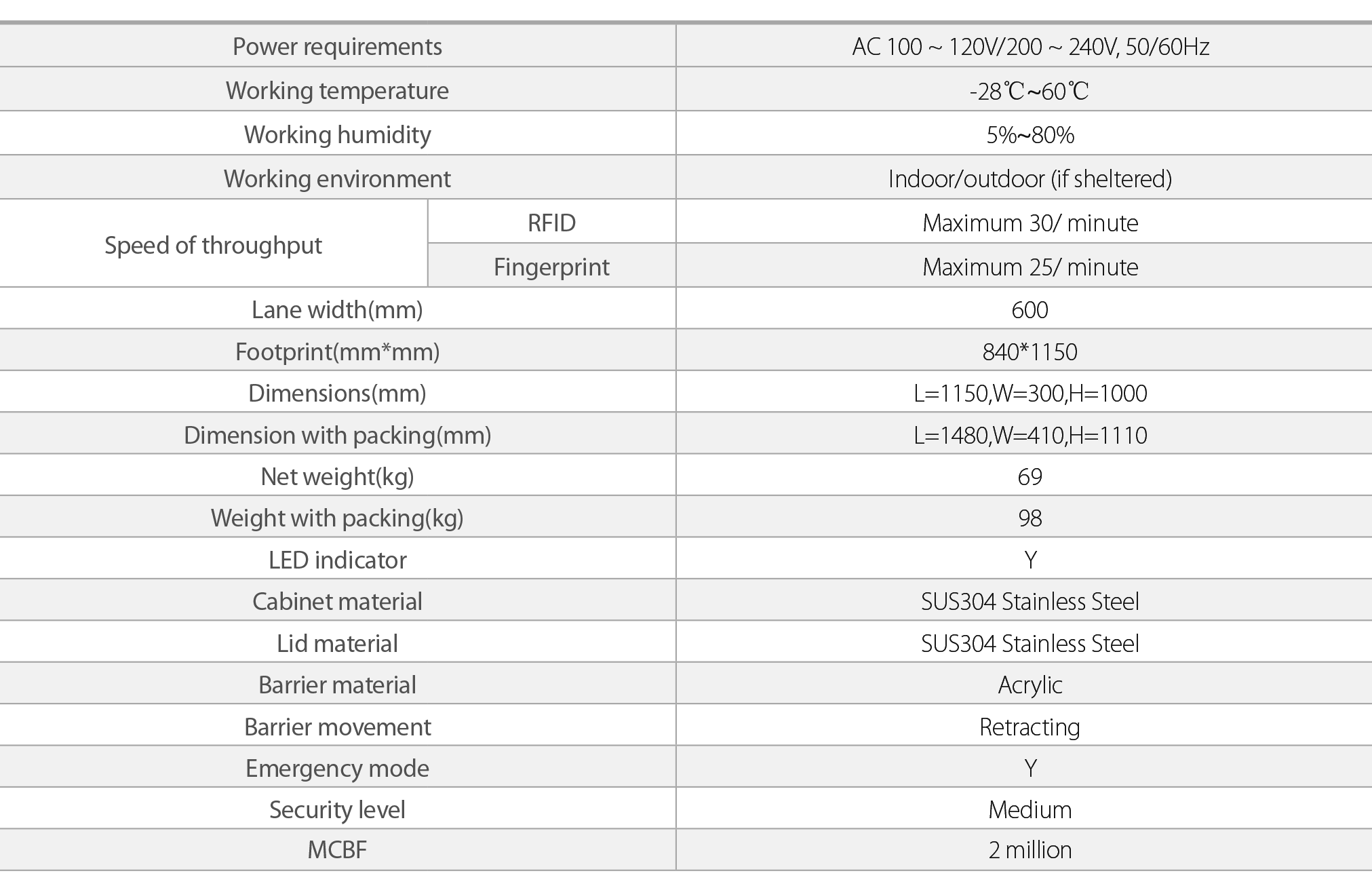FBL2200 adalah Flap Barrier Turnstile untuk tambahan Seri Lane dirancang untuk pengoperasian yang lancar dan senyap dan menarik daya sangat sedikit. Itu terbuat dari stainless steel yang membuat FBL2200 sangat tahan lama. Penghalang FBL2200 biasanya dipegang dalam posisi terkunci, dengan demikian menolak akses ke sisi yang diamankan.