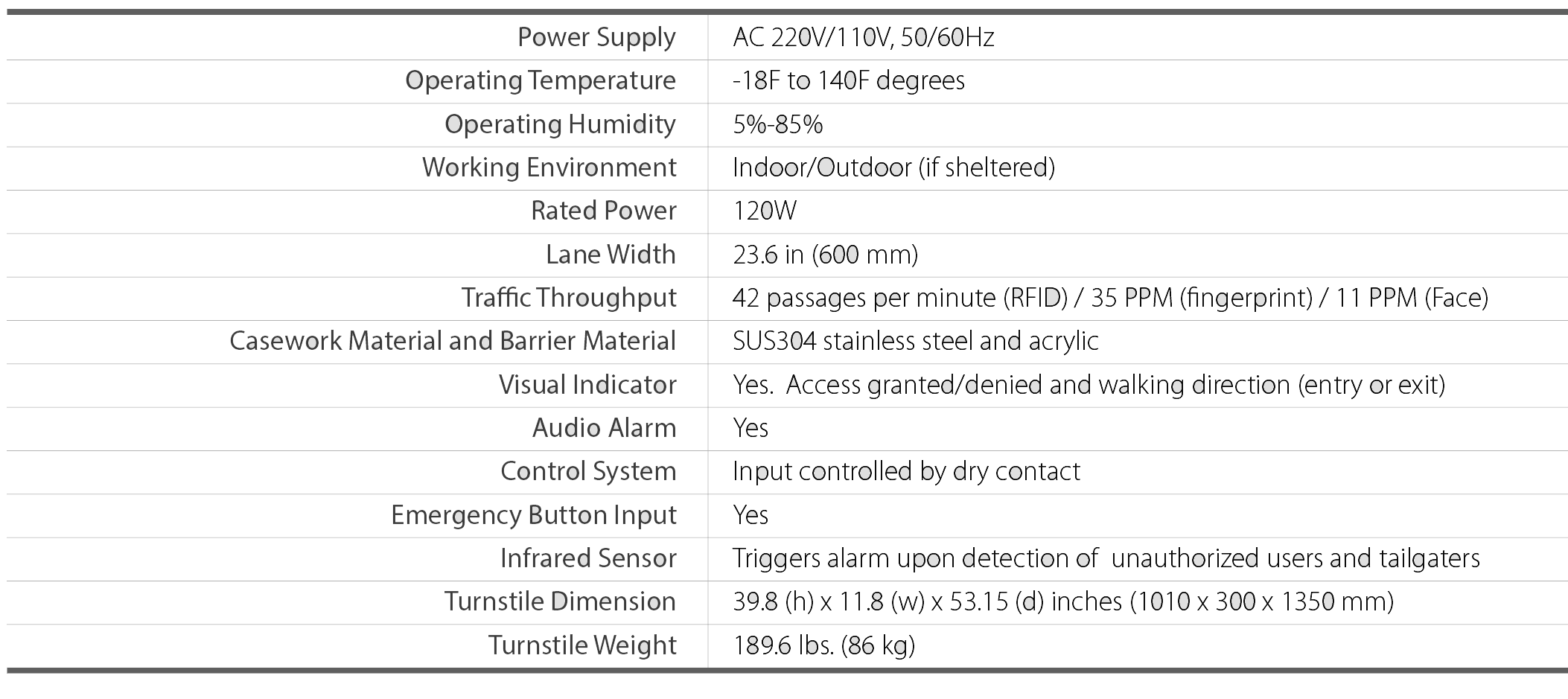 FBL4200 adalah pintu pagar penghalang flap 2 jalur seri yang dirancang untuk pengoperasian yang lancar dan senyap dan menarik daya sangat sedikit. Itu terbuat dari stainless baja yang membuat FBL4200 sangat tahan lama. FBL4200 hambatan akrilik biasanya diadakan di posisi terkunci, sehingga menyangkal jalan ke sisi aman.
