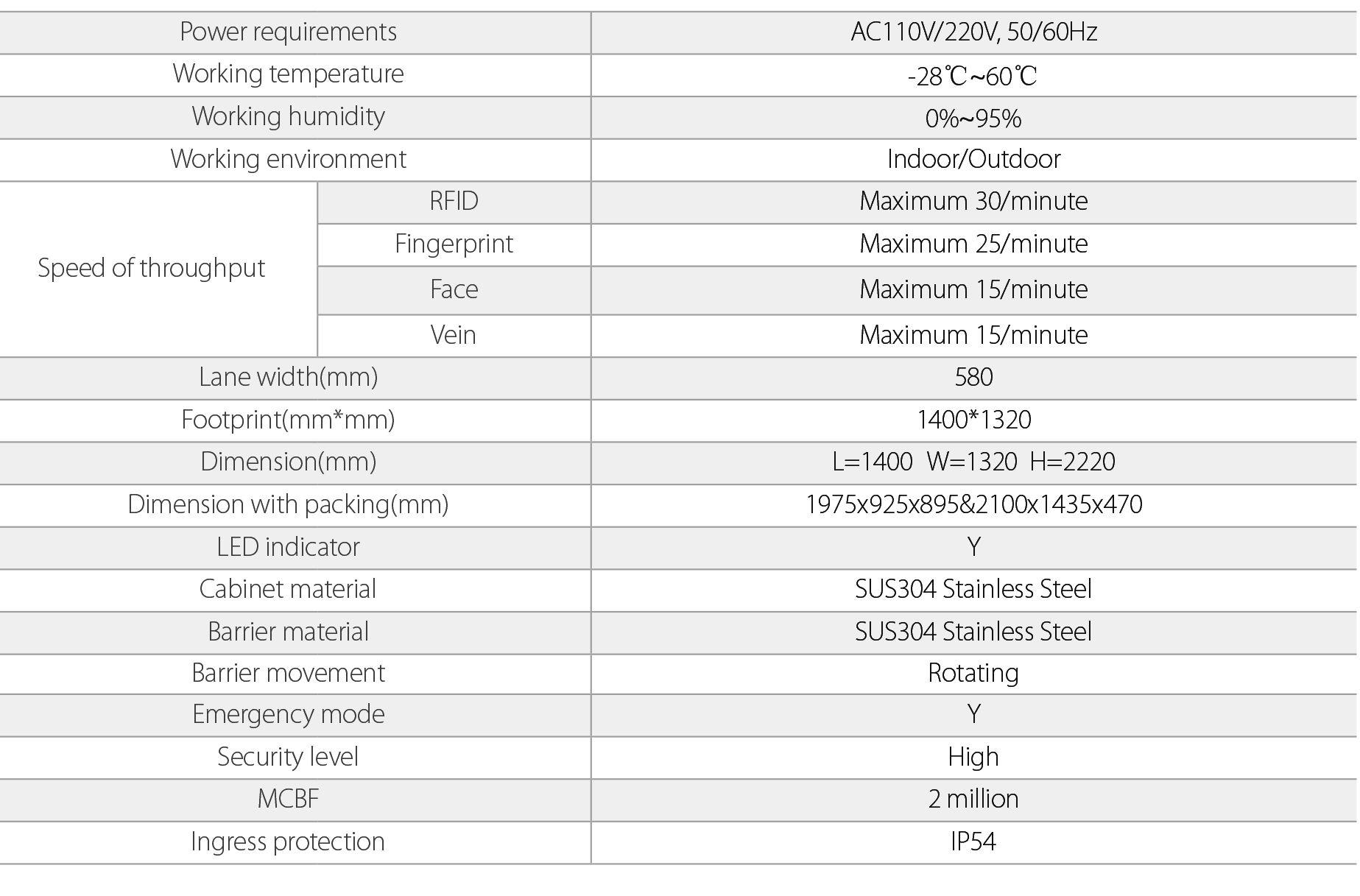 FHT2422: Full Height Turnstile with Fingerprint and RFID Access Control System