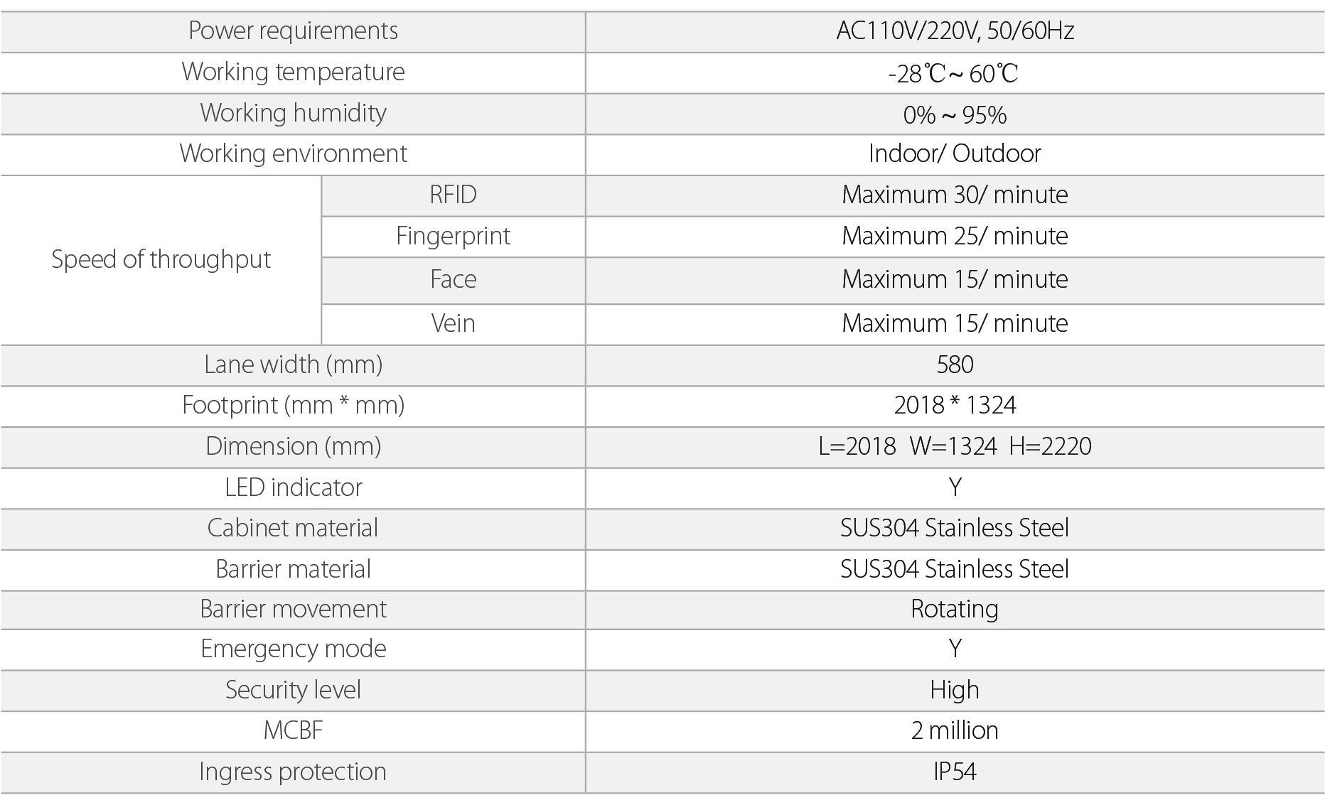 FHT2422D: Full Height Turnstile with Fingerprint and RFID Access Control System