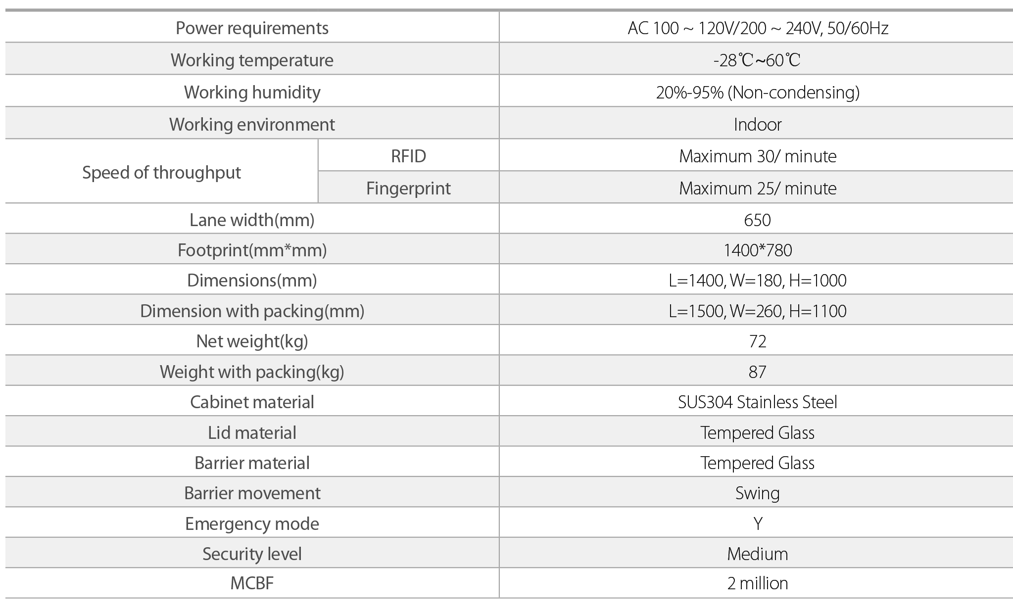 SBTL5200 hambatan biasanya diadakan dalam keadaan terkunci posisi, sehingga menolak akses ke sisi yang aman. Setelah pembaca SBTL5200 (RFID dan / atau sidik jari) secara positif mengenali kartu akses yang valid atau sidik jari, hambatannya berayun secara otomatis, dengan demikian memungkinkan pengguna beralih ke sisi yang aman.