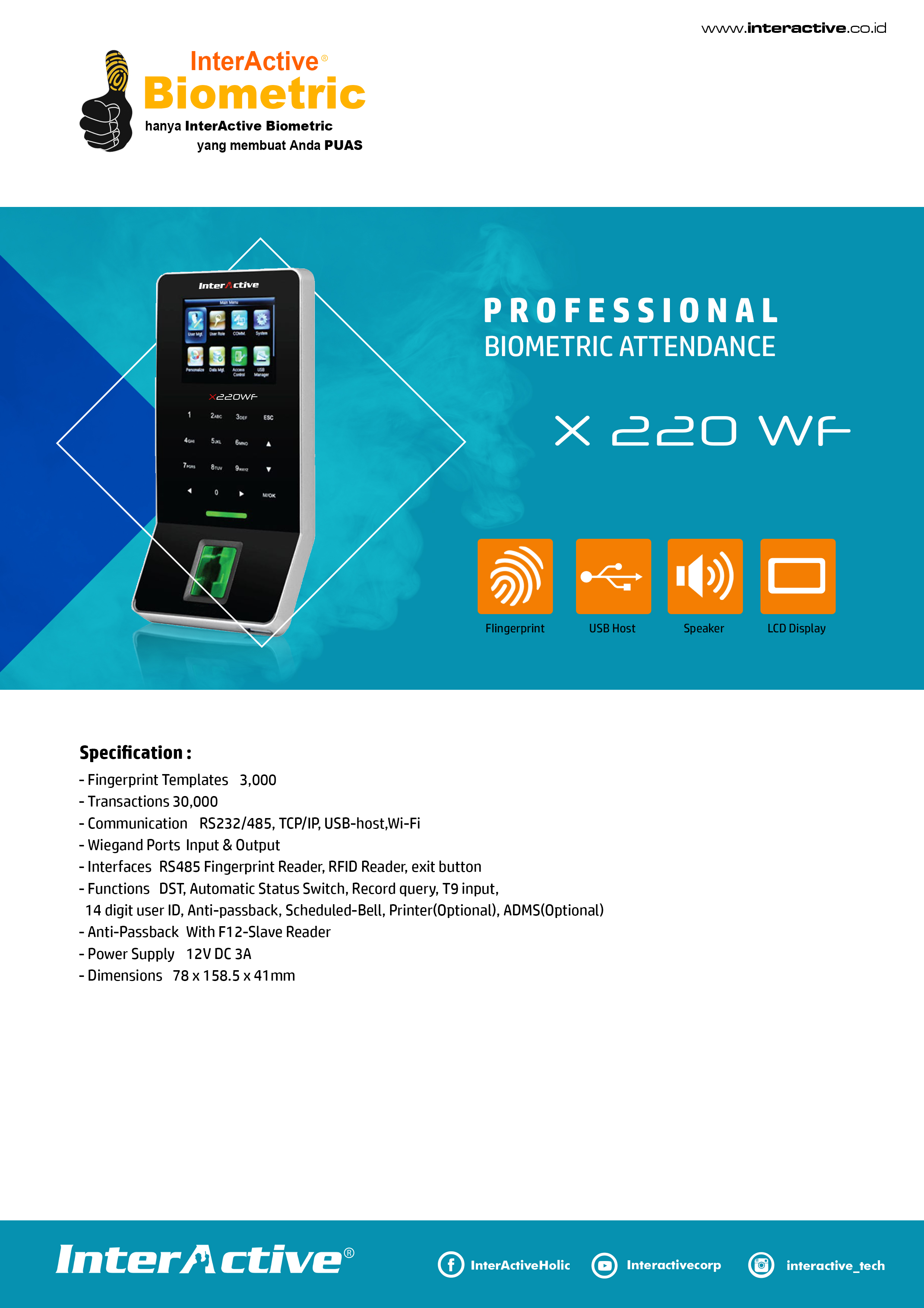absensi sidik jariMesin Absensi Sidik Jari yang dirancang khusus dengan Teknologi Terdepan saat ini. Mesin ini memiliki kapasitas memory yang besar dan dilengkapi dengan fitur canggih, seperti: Schedule Bell, SMS Message, Workcode, Function Key dan Access Control, dll. Design Casing Belakang Mesin ini dirancang agar dapat menyembunyikan kabel sehingga membuat mesin ini tampak lebih Rapi, Mewah dan Elegan.