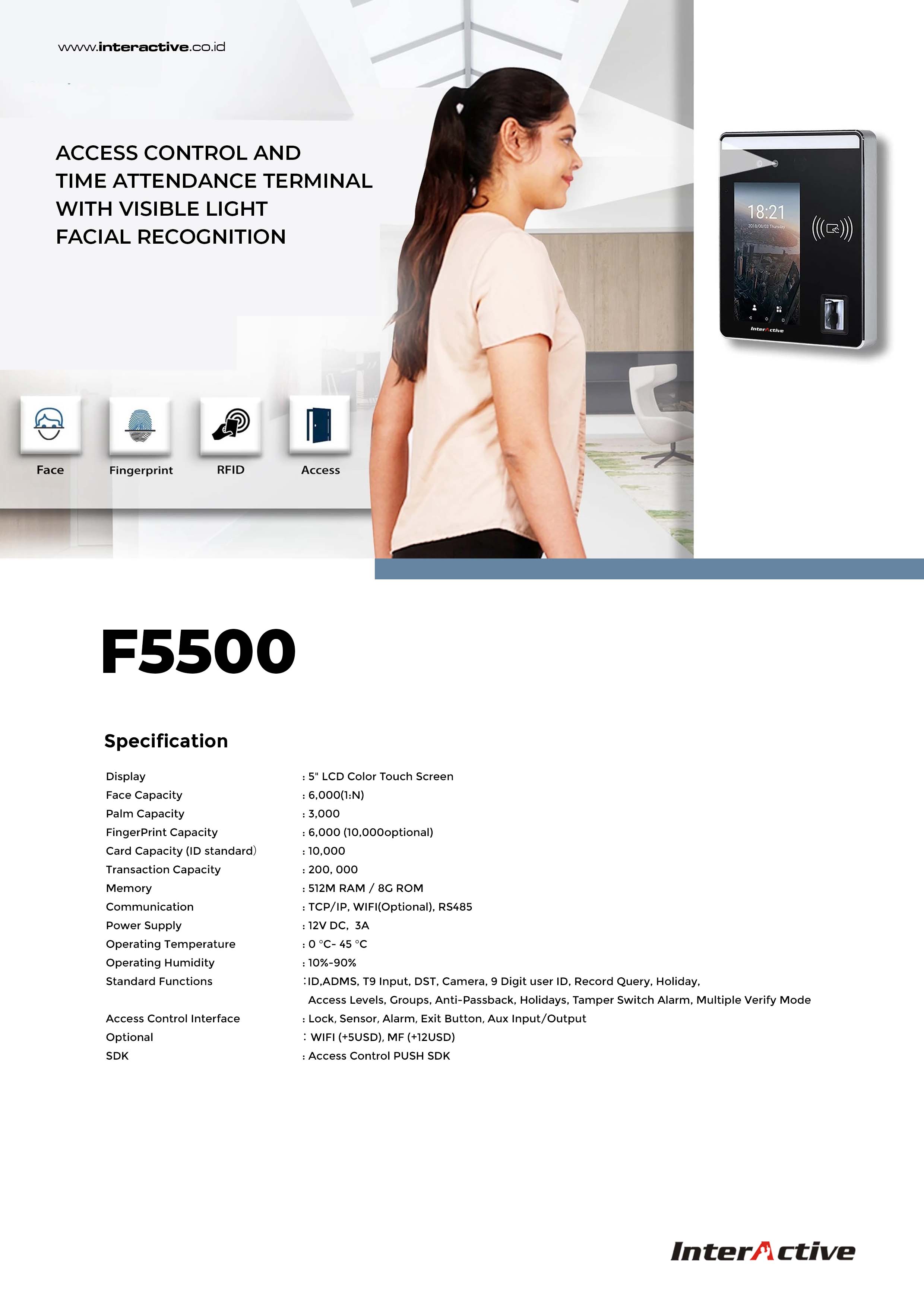 Mesin Absensi Deteksi Suhu Tubuh F-5500 adalah produk terbaru dari InterActive yang cocok digunakan dimasa pandemi Covid19.