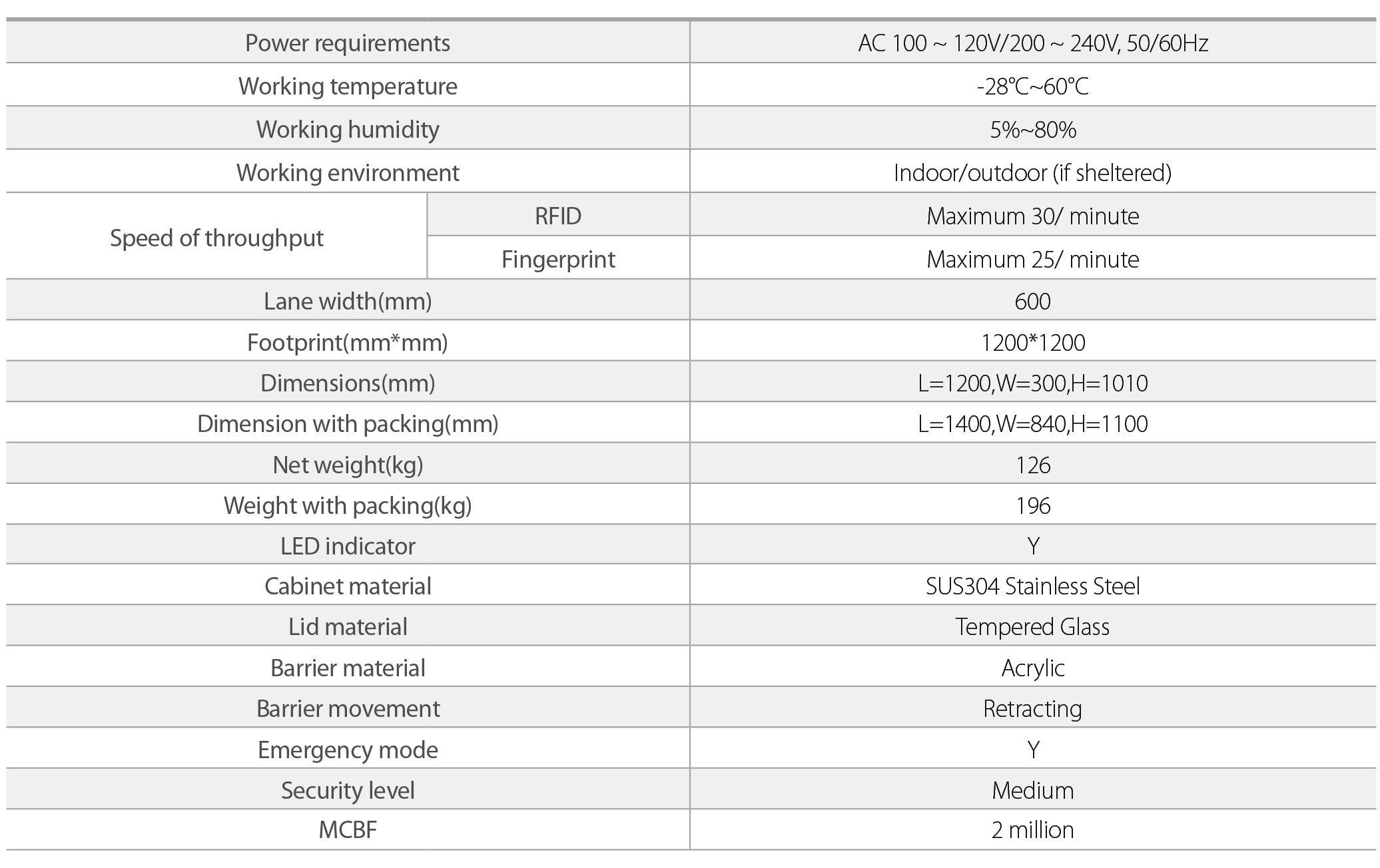 FBL5000 Pro adalah seri turnstile barrier lane flap tunggal yang dirancang untuk pengoperasian yang lancar dan senyap serta menghasilkan daya yang sangat kecil. Itu terbuat dari stainless steel yang membuat FBL5000 sangat tahan lama.