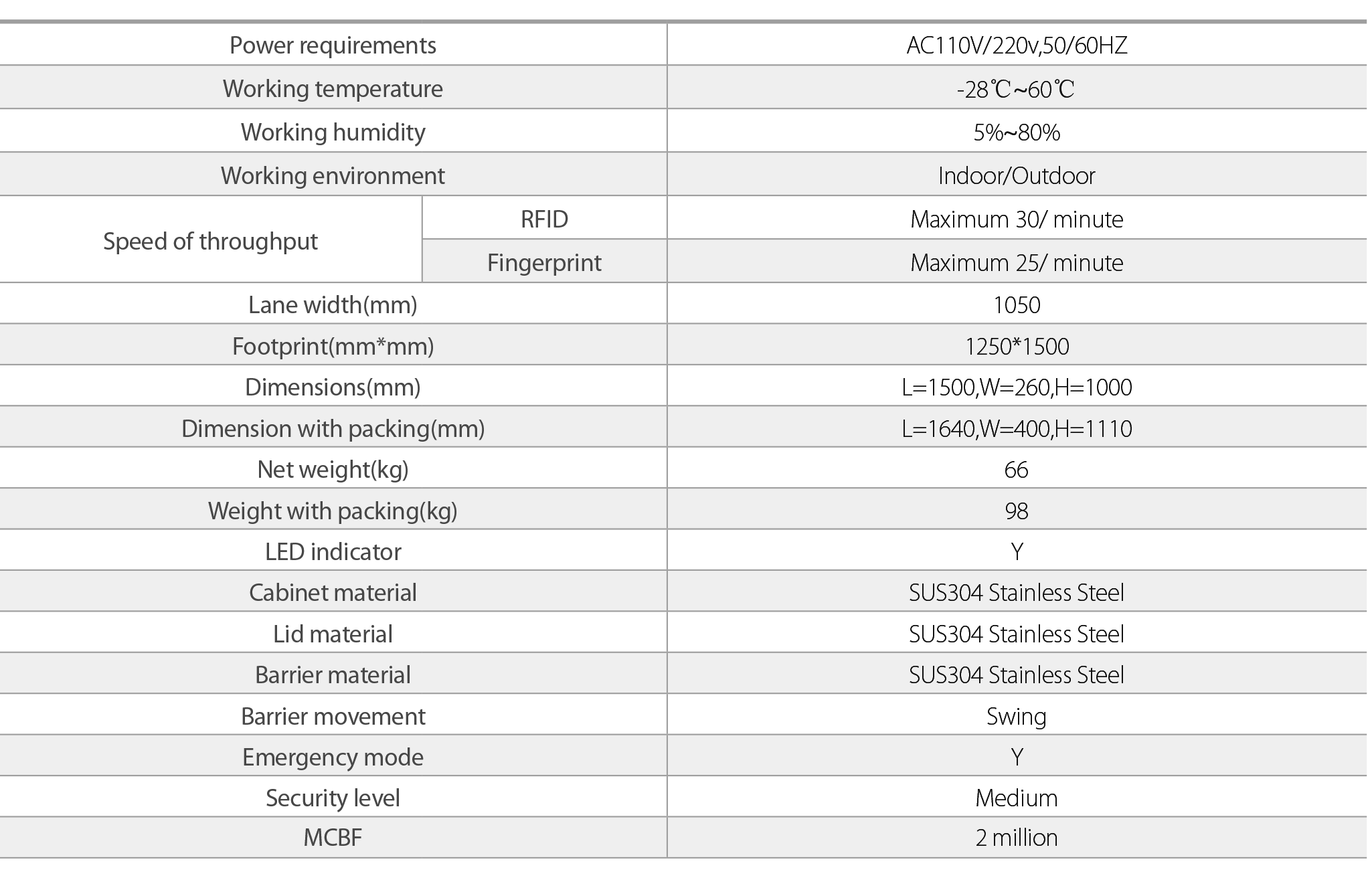 SBTL3200 biasanya ditahan di tempat yang terkunci posisi, sehingga menolak akses ke sisi yang aman. Setelah pembaca SBTL3200 (RFID dan / atau sidik jari) secara positif mengenali kartu akses yang valid atau sidik jari, hambatannya berayun secara otomatis, dengan demikian memungkinkan pengguna beralih ke sisi yang aman. Selama keadaan darurat hambatan secara otomatis berayun, dengan demikian memastikan pengguna FAST keluar tanpa terbebani untuk keamanan.